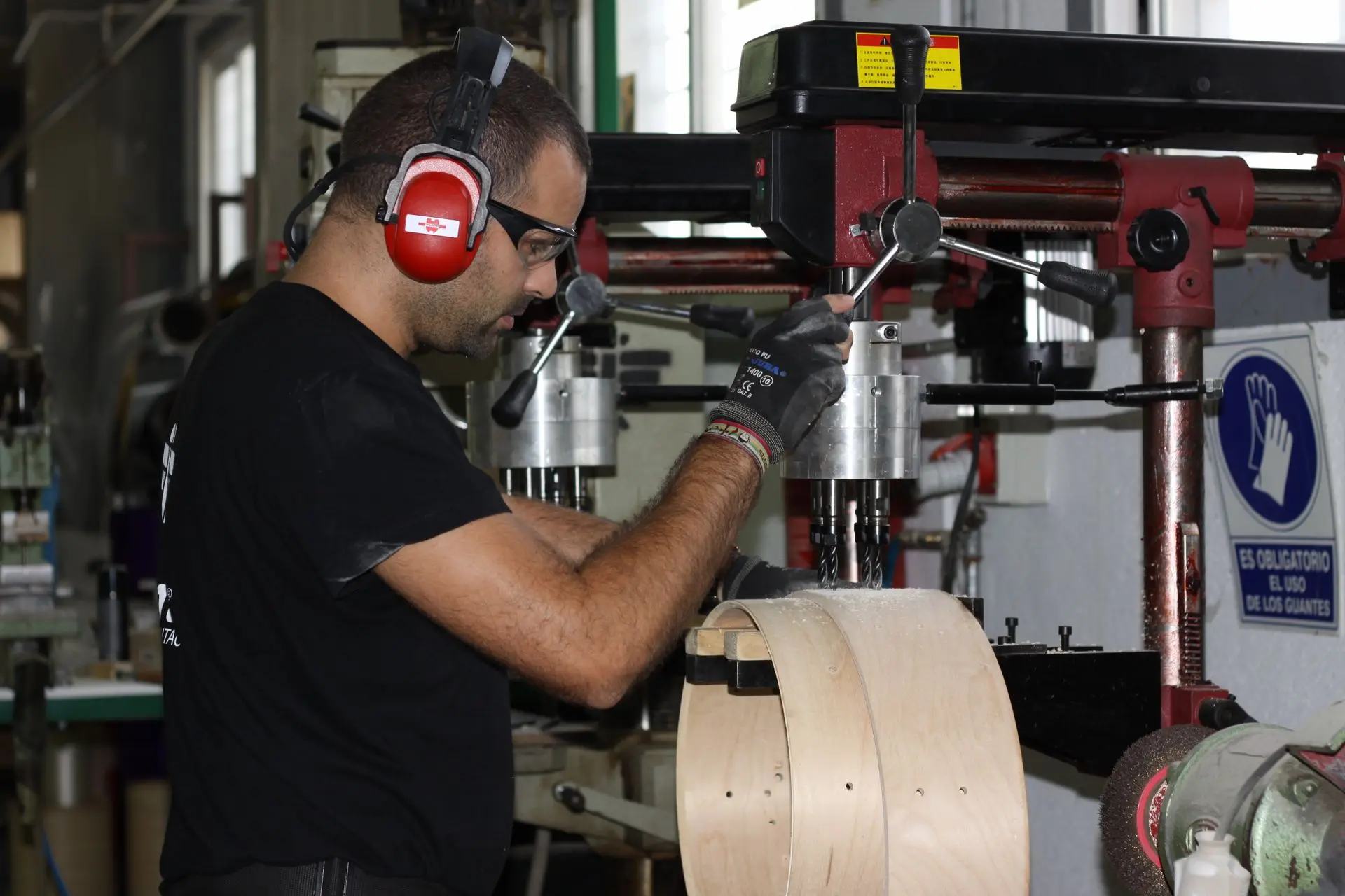 En Santafedrums creemos que una batería no se fabrica, se construye con alma. Cada casco, cada acabado, cada herraje pasa por nuestras manos buscando que todo quede perfecto.
