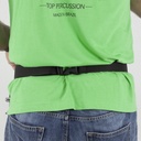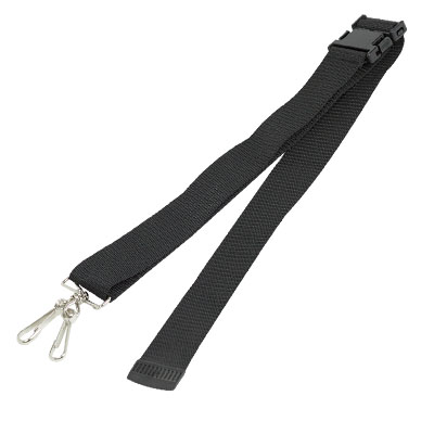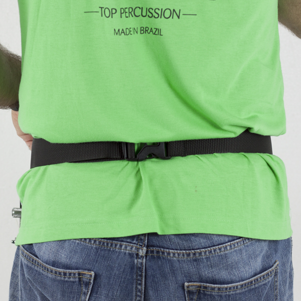 Correas para bombo, caja, tambor, etc. a la cintura. Con hebilla y dos mosquetones metálicos.
