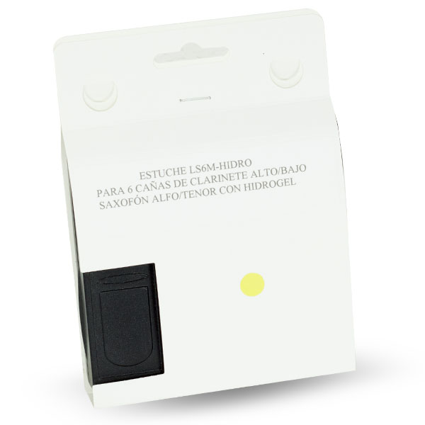 Plastic case for 6 cane of alto saxophone, tenor saxophone, alto clarinet & bass clarinet. With 'hidrogel'. External size: 11x11x2cm.