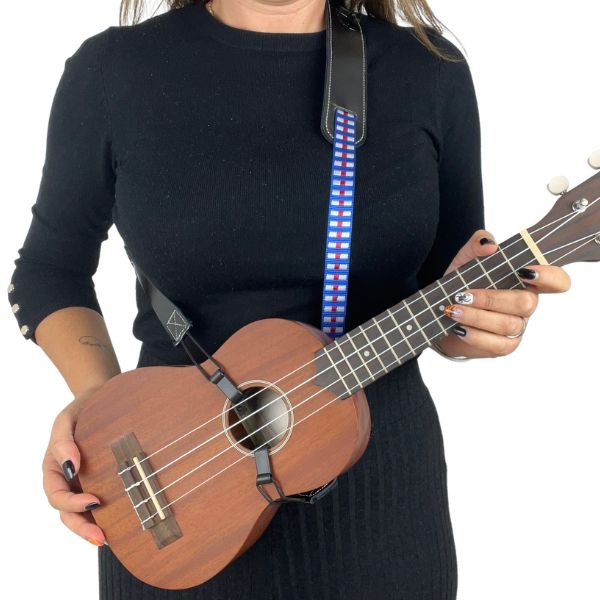 Ukelele straps with hooks for sound hole. Manufactured with nylon colours. With shoulder pad.