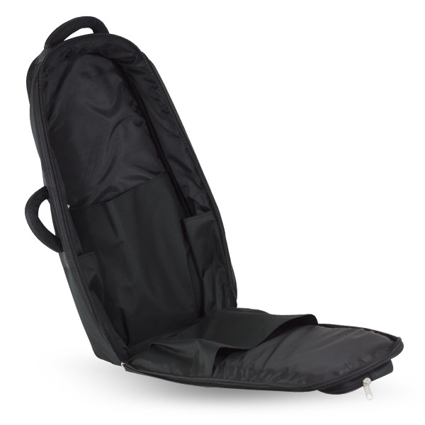 Fundas de poliéster, acolchado de 10mm de polietileno y forro de poliéster negro. Mochilas desmontables, 2 bolsillos y dos asas acolchadas.