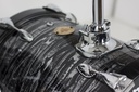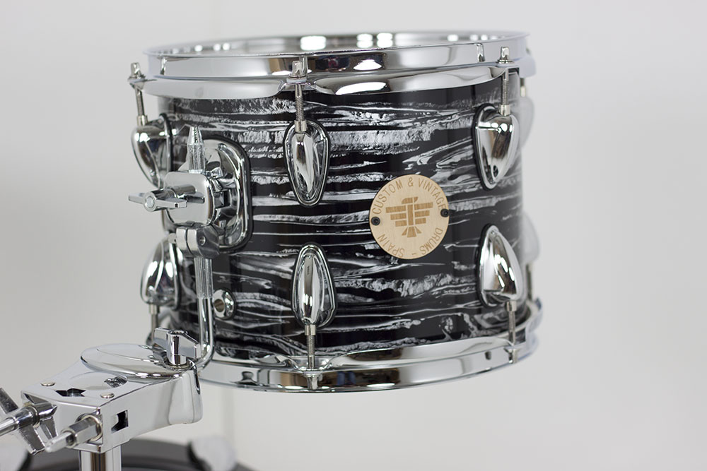 Casco de abedul de 8 láminas. Aros de haya en bombo y metálicos de 1,5mm en toms. Bellotas Gonalca 2004. Parches Remo UT. Patas de bombo y enganches Serie 8000 incluidos. El acabado se puede elegir entre todos los colores de la tabla estándar (covers). Incluye pieza central con un brazo y el elevador de bombo.